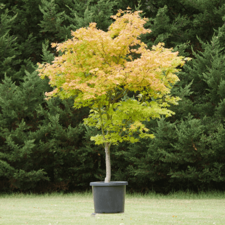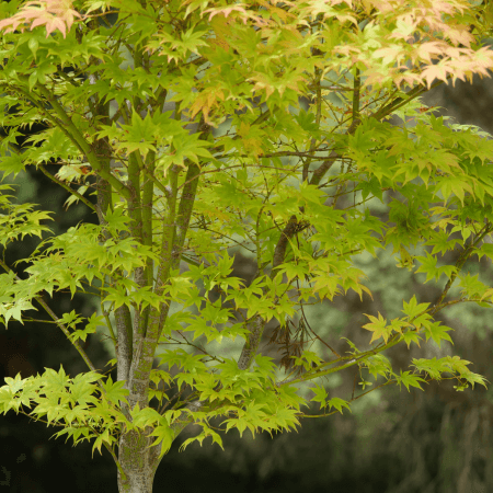 Without needing much intervention, Acer palmatum ‘Osakazuki’ grows into a neat and beautifully rounded habit to a height of 4m. Further to that these trees are said to have one of the best Autumn displays, bright oranges and fiery crimson, it’s no wonder that they are a favourite amongst gardeners. During the warmer months, leaves are a rich mid green which when combined with their form give them a refined and elegant appearance. Acer palmatum ‘Osakazuki’ benefits from protection from harsh sun and hot winds and need even moisture in order to flourish.
